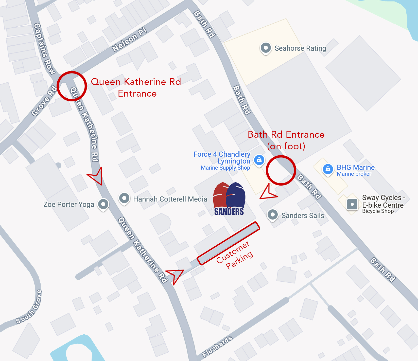 By foot: Bath Rd behind Force 4 Chandlery