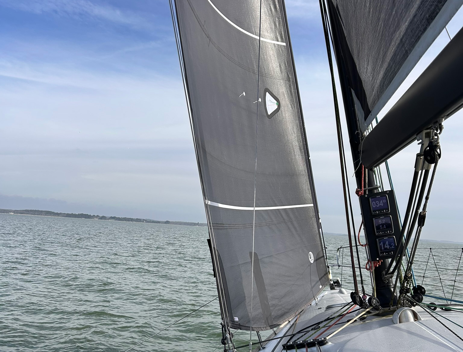 - Hoist the sail in light conditions and sheet it in firmly.
