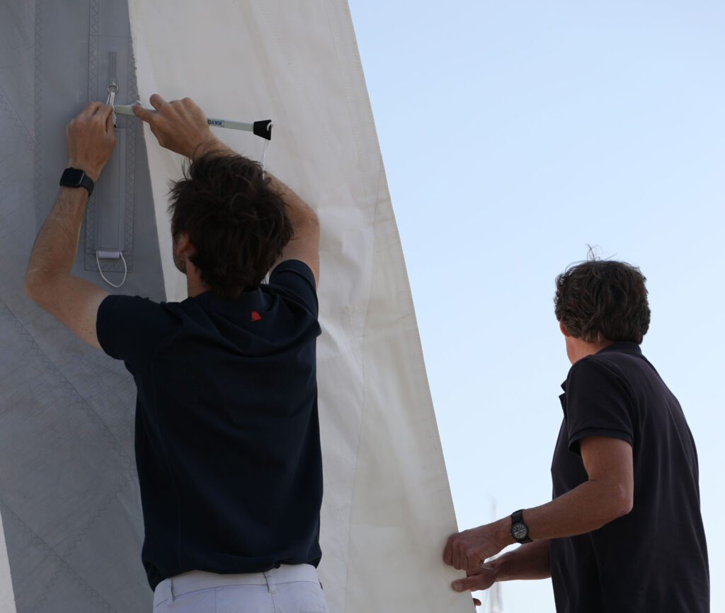 Now comes the important bit: fitting them properly and giving them the right first outing. Modern materials, such as Sanders Filmless Membranes (SFM) do not need to be ‘sailed in’ the way older woven sails once did. They don’t need stretching. They don’t need punishment. They certainly don’t need flogging into submission. But they do benefit from a calm, sensible first sail.
