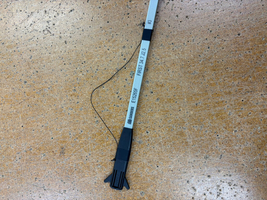 The RBS rocket will already be attached to the end of the batten and retained by a thin Dyneema safety line. This line prevents the rocket from dropping away from the batten and makes removal quicker at the end of the day. Check the orientation of the rocket: it has a small lip on one side which should face up. Push the batten smoothly into the pocket until it is fully home, with the rocket sitting neatly inside the leech end.