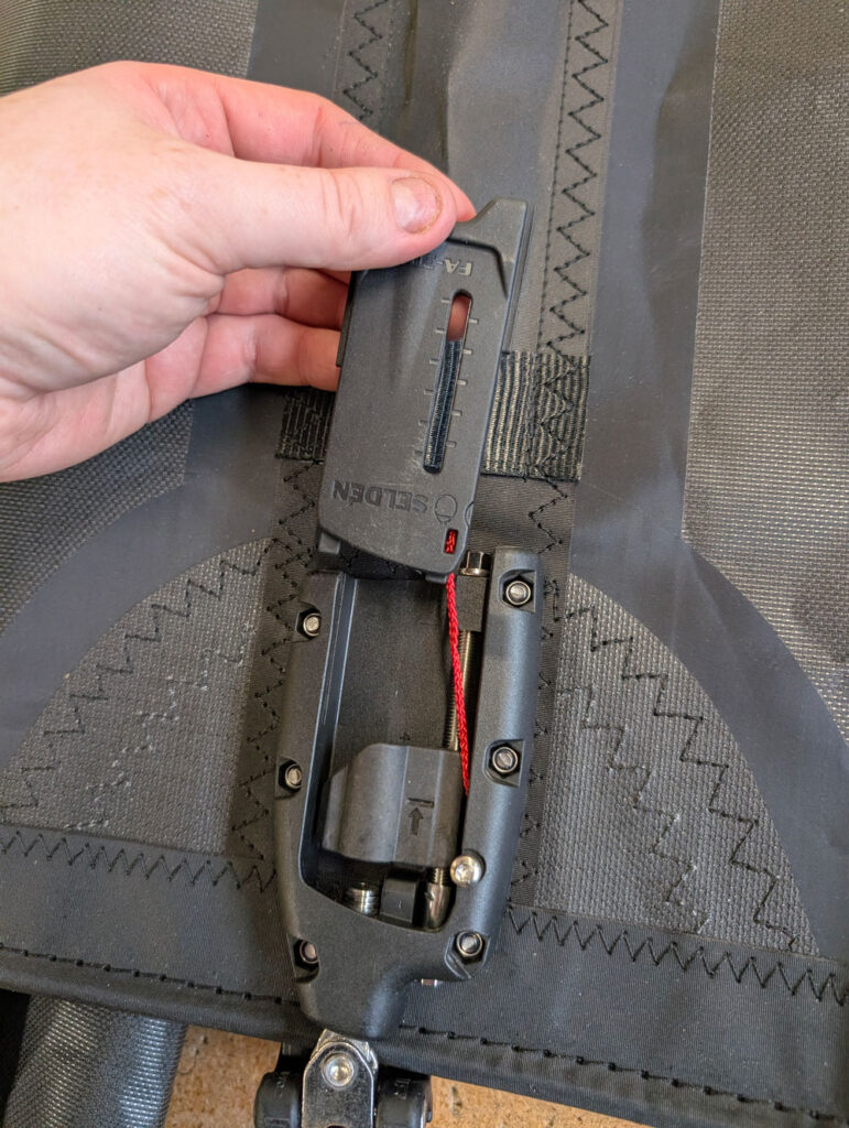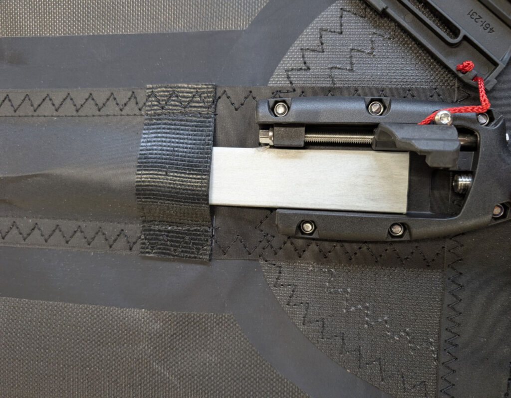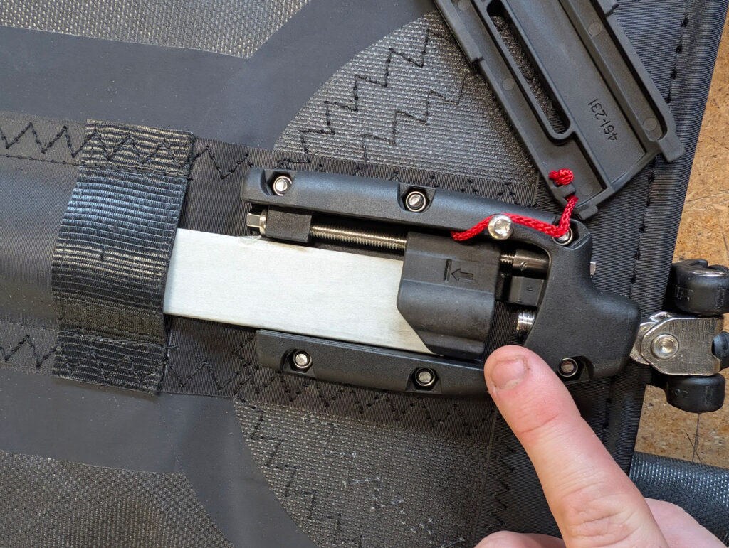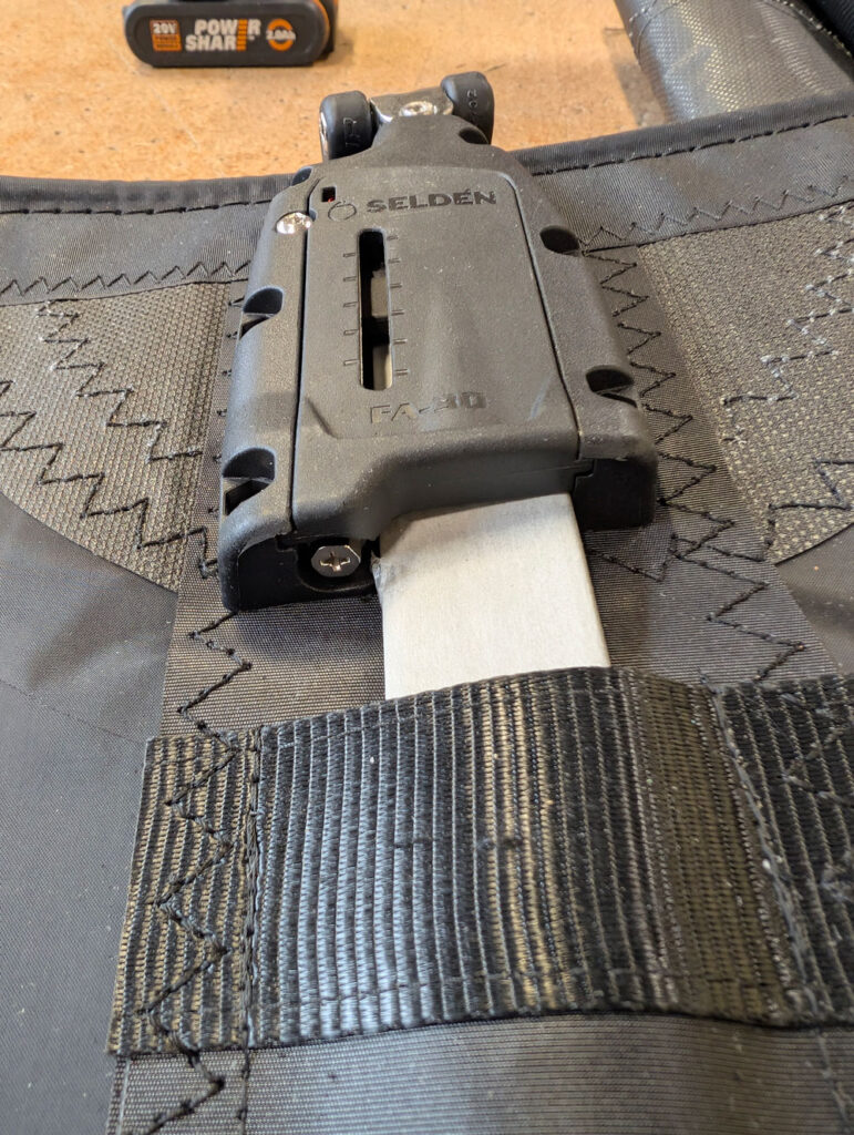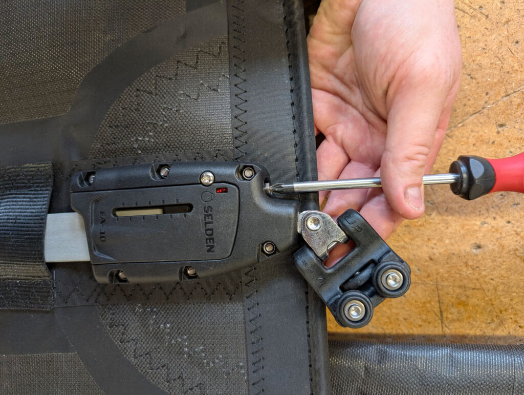using a Phillips screwdriver, you can tension the batten receptacle from the front or the back of the pocket. This allows for easy location when the sail is fitted on or off the mast. Repeat the process for each batten, working methodically from the top of the sail downwards.