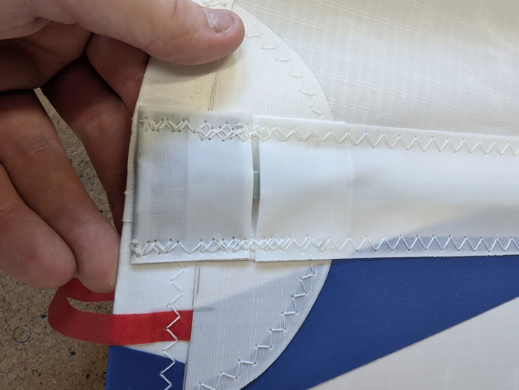 Finish with a gentle shake of the sail to confirm the batten is sitting right at the back and held securely. Check the batten is secure at the inner end of the elastic as well as the leech. Once confirmed, move to your next batten pocket and repeat.