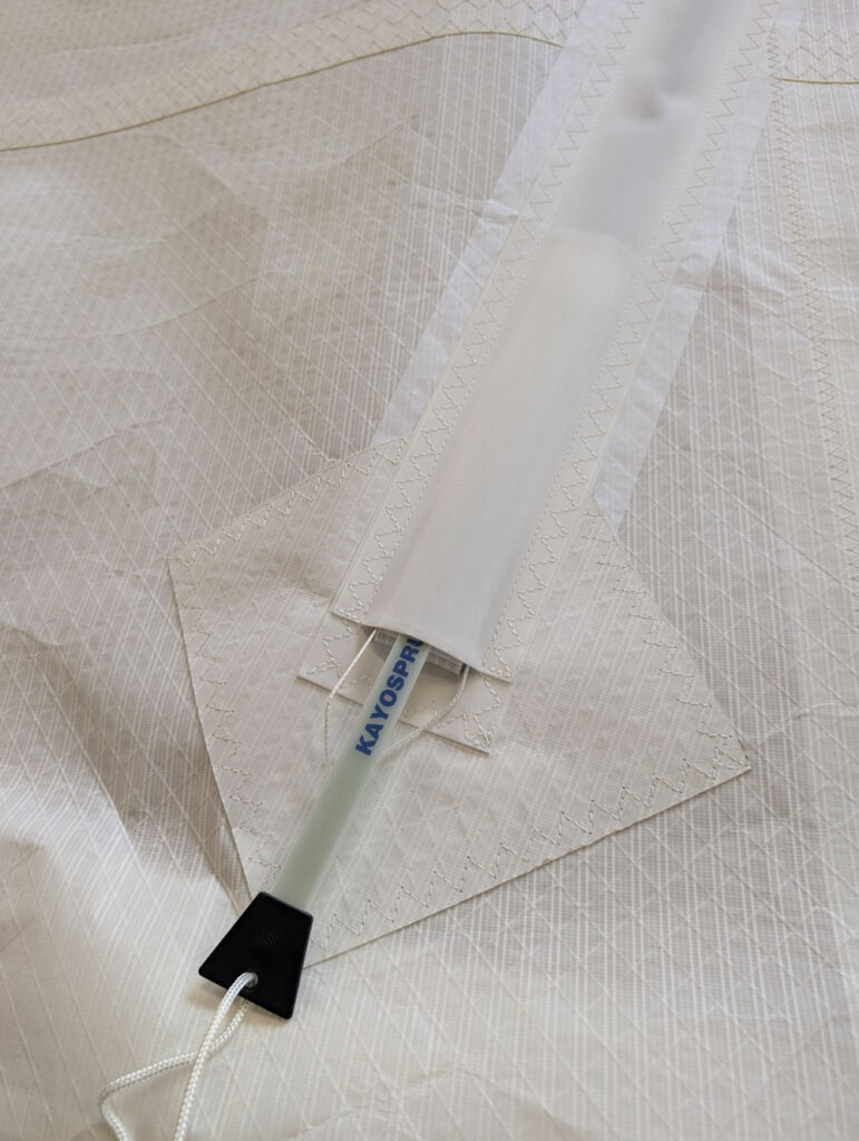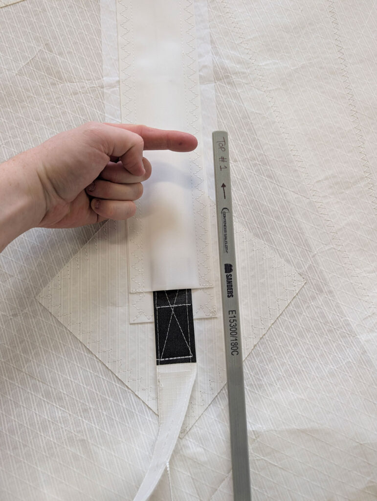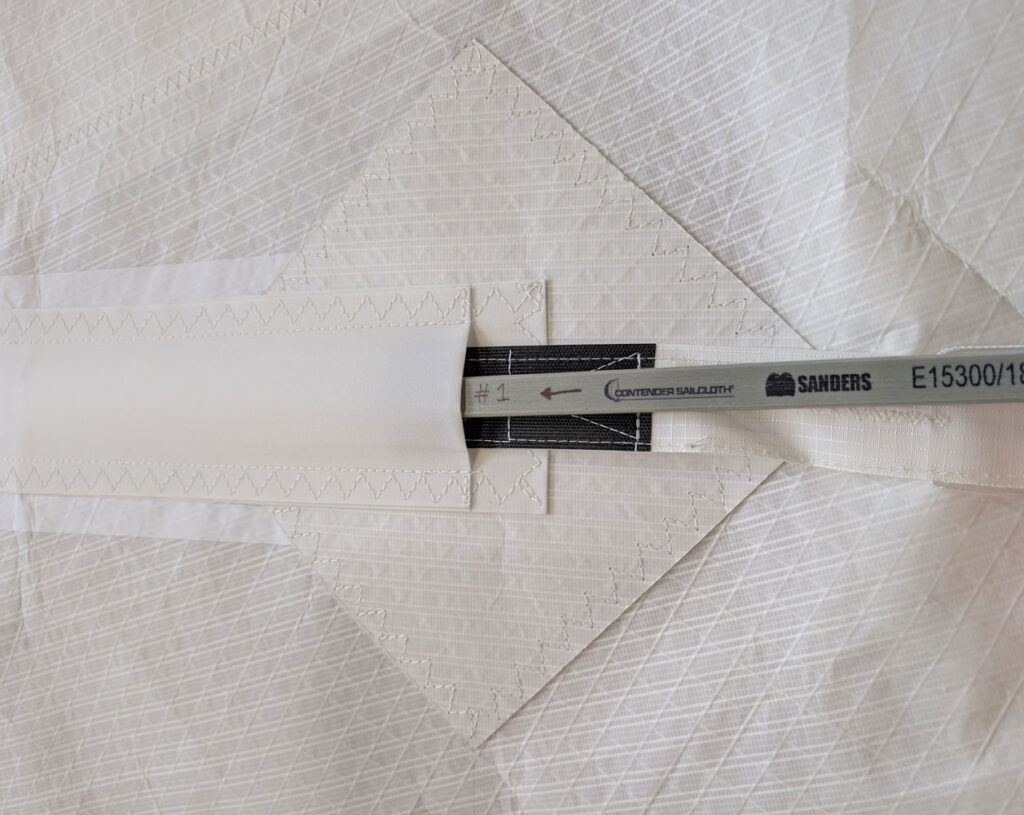 Vertical Velcro Batten Pockets are mostly used on non-overlapping headsails and allow you to furl your sail with some additional leech support. Lay the sail out flat with the batten pockets facing upwards. Identify each batten and check any markings or labels to confirm their order. It is important to locate the thicker end of the batten as this will be inserted first and will finish up against the leech.
